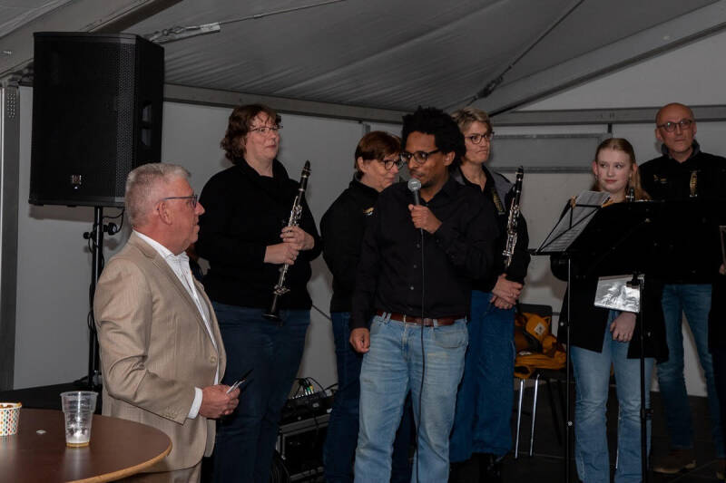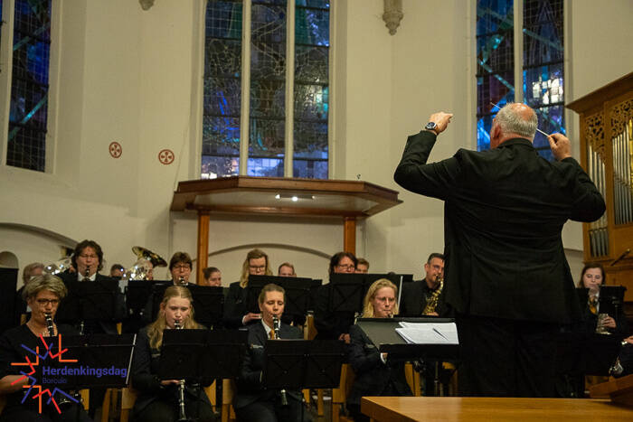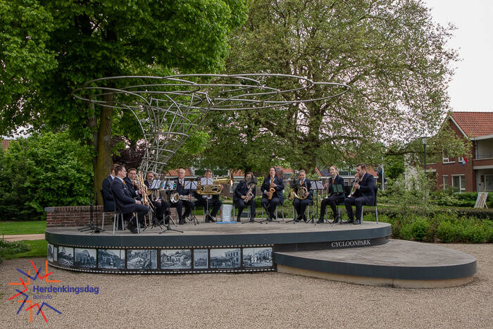 Daarna heeft het harmonieorkest in samenwerking met Ellie Mobbs en Eelco Schuijl de muzikale omlijsting verzorgd tijdens de herdenkingsbijeenkomst.